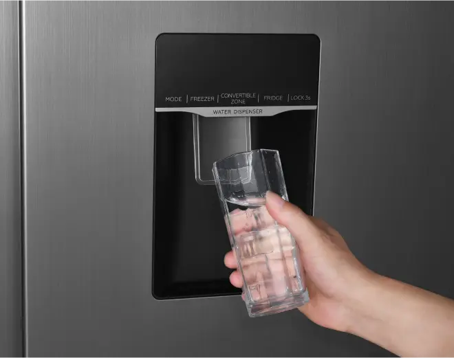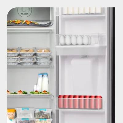 Reka bentuk moden dengan Dual Inverter Technology bukan sahaja jimat elektrik, tetapi juga operasi senyap. Teknologi No Frost Cooling memastikan semua bahagian peti ais sejuk sekata tanpa ais berkumpul, manakala Smart Convertible Zone membolehkan anda menukar ruang untuk simpanan lembut atau beku mengikut keperluan. Ada juga Built-in Water Dispenser supaya keluarga sentiasa hydrated.