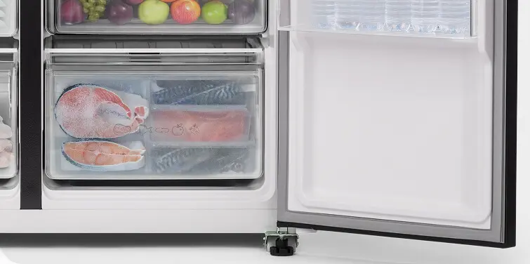 KHIND Side by Side Refrigerator memang pilihan terbaik untuk keluarga besar yang perlukan ruang ekstra dalam peti ais. Dengan kapasiti luas, fungsi menarik dan ruang fleksibel, semua lauk pauk dan bahan masakan boleh disimpan dengan mudah. Tak perlu susun macam main tetris lagi — confirm semua muat!